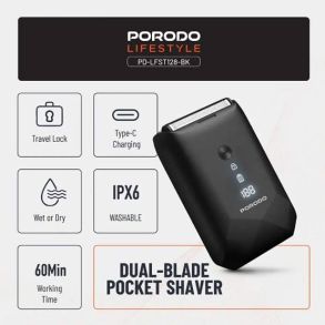 The Porodo Lifestyle Dual-Blade Pocket Shaver pairs convenience with functionality for a clean shave on the move. Fitted with a 600mAh battery, it provides up to 60 minutes of usage following a fast 1.5-hour charging via the Type-C charging port. Its high 8000RPM motor offers a quick and effective shave with every use. The shaver is compatible with wet and dry use and, therefore, versatile enough for any user preference. It is simple to clean thanks to its IPX6 wash rating, and its travel lock ensures it cannot turn on accidentally when stored. The shaver is 5W rated for power, but despite its small size, it cuts precisely and is excellent for use when traveling or on a daily basis. The 5V/1A input DC makes easy recharging convenient, so you're always ready for your next shave. Porodo Lifestyle Dual-Blade Pocket Shaver is your ideal grooming companion, bringing performance and convenience in a single sleek package.