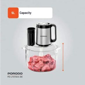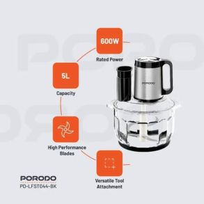 The Porodo Lifestyle Meat Chopper Food Processor is ideal for quick food preparation in the modern kitchen. Powered by an excellent copper motor, with 600W of strong and efficient energy performance in chopping, mincing, and mixing ingredients with ease, the chopper's powerful functions work incredibly to handle the required job. Moreover, three changeable speeds help create just the perfect consistencies. The 5L capacity provides ample space to prepare enough food for a whole family, while the cutting blades are sharp to make light work of meats and vegetables. This non-slip base provides further stability with standard UK 3-pin plug-fitting outlets. Strong, practical, and easy to operate, this processor is a 'must-have' addition to any kitchen for swiftly and efficiently processing foods.