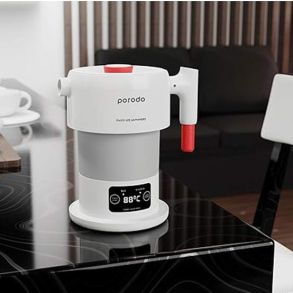 The Porodo Lifestyle 850W Kettle with Digital Display is a stylish, efficient, and convenient appliance. Its compact design and white look make it perfect for small kitchens, offices, or even travel. The durable silicone body allows the kettle to fold down for easy storage. With its powerful 850W output, you can quickly boil water. The digital display shows the temperature in real-time and allows precise control for your perfect cup of tea or coffee. It features a BS plug and has a 600ml capacity. The Porodo Lifestyle 850W Kettle is an ideal kitchen appliance for modern and busy lifestyles.