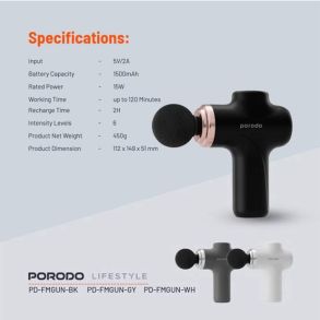 The Porodo Lifestyle Precision Handheld Massager with 4 Interchangeable Heads is designed to provide targeted relief and chillaxing. Its four adjustable massage heads can do it all. They are: Fork Head, Flat Head, Ball Head, and Bullet Head. They can provide deep tissue relief and calm vulnerable areas. This massager's 1500 mAh battery allows for 120 minutes of use. It guarantees long periods of relaxation. Its 15 W power provides efficient functioning. Its six settings allow a custom massage to fit each person's tastes. For quick and dependable recharging, the gadget has a handy Type-C charging connector. It has an auto shut-off mechanism to avoid misuse for improved convenience and safety. The Porodo Lifestyle Precision Handheld Massager is compact and ergonomic. It is perfect for relieving muscle tension and promoting well-being.