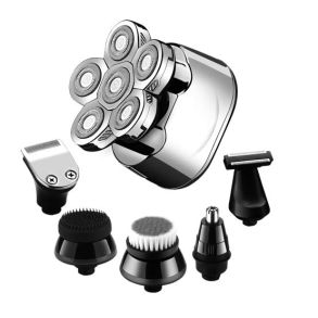 The multifunctional Porodo head shaver is a groundbreaking personal grooming device, innovatively designed to handle multiple shaving needs. It is a convenient five-in-one tool equipped with stainless steel blades for high precision, durability, and hygiene. This comprehensive grooming kit includes a facial brush, a facial sponge, a nose and ear trimmer, a face and sideburn trimmer, and a body trimmer. The unit boasts a high-capacity 600mAh battery that recharges in just 2 hours and provides a powerful 5W output, delivering a robust performance of 90 minutes of continuous operation. A standout feature is its waterproof design, allowing for use in the shower and easy cleaning. This multi-functional head shaver epitomizes the perfect balance between efficiency and convenience, proving to be an indispensable tool in the modern man's grooming arsenal.