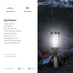 Have you ever camped outside but got afraid of your surrounding when it got dark? With the Porodo Outdoor Tripod Lamp you can camp outside with an ease of mind without worrying about your surrounding as the Tripod Lamp brightens your surrounding by 10 meters. Also, you can increase and reduce the brightness intensity according to your liking where 600 LM is the highest and 300 LM is the lowest. Owing thanks to the Tripods, the lamp can be easily installed without falling as the stand is made up of durable materials such as ABS and TPR. Since, the Tripod Lamp is rechargeable, you can use Type-C cable to charge and give you 2 to 5 hours of working period with its dual 1200mAh battery capacity.