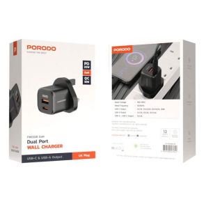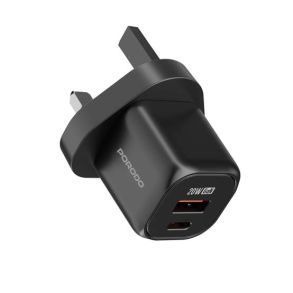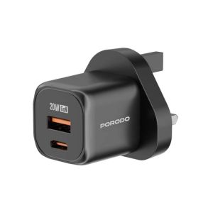 Porodo PD 20W Dual Port QC3.0 UK Fast Charger - Black