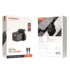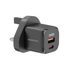 Porodo PD 20W Dual Port QC3.0 UK Fast Charger With C to Lightning Cable - Black