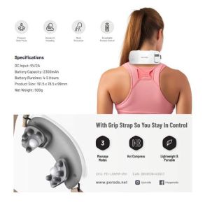 ?The Porodo Neck & Waist Massager is the perfect solution for anyone looking for a relaxing and effective massage. With its three massage modes (Pressure Relief, Acupoint Kneading, and Neck Relaxation), hot compress feature, and detachable remote control, it offers a customized massage experience that is sure to please. Pressure Relief Mode soothes stress and tension in the neck and shoulders, while Acupoint Kneading targets specific pain areas. Neck Relaxation Mode provides a gentle massage that helps to loosen tight muscles and promote relaxation. The Massager also features a hot compress feature that helps to improve circulation and reduce pain and inflammation. The detachable remote control allows you to easily adjust the massage settings without having to move the massager. With its strong 2300mAh battery, the tool can provide up to 4-5 hours of massage on a single charge. It is also lightweight and compact, making it ideal for travel and home use. The exclusive Grip Strap ensures that you always have control over the massager.