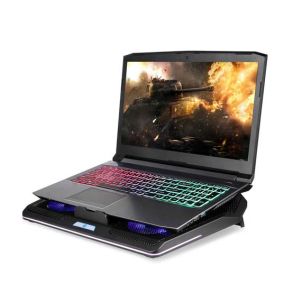 The Porodo gaming laptop cooling pad is an essential accessory for gamers. It offers impressive functionality and design. This compact and lightweight device features 5 high-speed fans that generate an optimal airflow of 1400 RPM, effectively drawing heat away from your laptop. Additionally, it has 15-color RGB lighting that allows you to personalize the color and create a pleasant ambiance in your room. With its convenient touch panel, you can easily control the fan speed and lighting with a simple tap. The device comes with a 3stand level, ensuring its ergonomic design.
