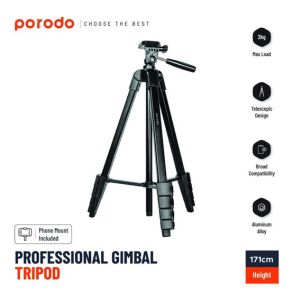 Achieve smooth and professional shots with the Porodo Professional Gimbal Tripod. With a load capacity of up to 2kg, it's perfect for lightweight cameras. The telescopic design extends up to 171 cm, providing flexibility in height adjustments. Its aluminum alloy construction ensures durability and stability for all your camera needs.