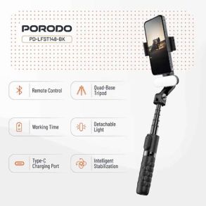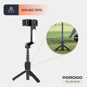Porodo QuadBase Gimbal Stabilizer is the ultimate go-to for capturing smooth, professional-grade video with ease. Made of heavy-duty ABS and Aluminum, this stabilizer will last forever. It includes a variety of adaptable mount holders of 108.7 - 150.4mm to hold a variety of devices. Its folded length of 180mm extends to 790mm for maximum flexibility while filming. Being charged with a 400mAh Pan Tilt battery and a CR1632 remote control battery, this gimbal supports 3-4 hours of continuous video shooting. This gimbal contains Bluetooth 5.2 to offer smooth connections and comes in multiple modes like Selfie Mode, Sports Mode, and Dream Space Mode for stable shots of all your photo captures. The Quad-Base Tripod and smart stabilization provide stable footage, while the detachable light provides more convenience for use in low-lit settings.