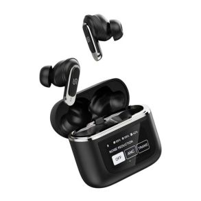 the Porodo Soundtec Guide ANC Touch Display TWS Earbuds, a great device to give you an exceptional audio experience. The charging case is equipped with a 530mAh battery capacity, taking only 1.5 hours to get fully charged, and with just 40 minutes of charging time for the earbuds, you are ready to go with 6 hours of continuous music and call time. There's also a display, which provides clear navigation and status updates. With their catchy design and IPX4 waterproof rating, these earbuds are perfect for active lifestyles.