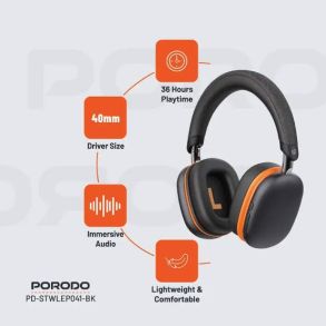 • The Porodo Soundtec Vibe Wireless Headphone represents the ultimate combination of premium sound quality, comfort, and durability for both music lovers and professionals alike. Equipped with 40mm drivers, this can easily produce surround sound with powerful bass and crystal-clear sound for complete enhancement in listening. With a 300mAh battery, it offers unimaginable 36 hours of playtime, 30 hours of talk time, and 44 hours of standby for all-day use without interruption. It gets fully charged in just 2.5 hours with the Type-C charging port. Equipped with Bluetooth V5.3 transmission, up to 10 meters range allows for an untroubled wireless connection. Designed for long-term comfort, they are lightweight and ergonomically built, thus suitable for an extended period. Whether one is listening to music, calls, or one's favorite podcast, this Porodo Soundtec Vibe guarantees performance and style.
