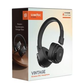 The Porodo Soundtec Vintage Wireless ENC Headphone, with classic designs and modern technology, delivers excellent audio. With a battery capacity 350mAh, these headphones will provide up to 12 hours of playtime on 70% volume and 13 hours of talking time, which suits your lifestyle just right.The Bluetooth V5.3+EDR technology and an attached working distance of 10 meters, the wireless headphones assure smooth management. Just plug and play; the headphones are made of skin-friendly materials with a micro-SD slot, allowing more playtime. The standby time is a whopping 200 hours, perfect for light and heavy listeners and stylish and practical enough for the groovy.