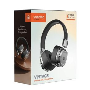 Porodo Soundtec Vintage Wireless ENC Headphone - Black/Silver