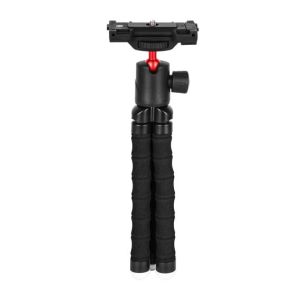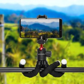Stunning photos and videos from any angle are easily achievable with the Porodo Table Tripod with Phone Holder. This tripod features a 360° panoramic head, which allows for smooth panning and tilting. The integrated phone clip securely holds your device in place, while the cold shoe design enables attachment of additional accessories, such as microphones or LED lights. The anti-slip foam on the flexible legs ensures a stable grip on various surfaces, and the bubble level indicator helps you achieve precise horizontal alignment. The ball lock knob allows for quick and easy adjustments, and the 1/4" screw hole at the bottom of the head offers compatibility with other tripods or stands.With an anti-slip contact point on the leg tip, the Porodo Table Tripod with Phone Holder offers ultimate stability and versatility for your photography and videography needs.