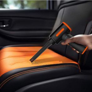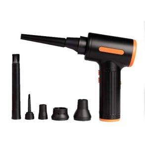 The Porodo Triple Speed Portable Air Duster is an essential tool for effectively cleaning keyboards, computers, and other delicate electronics. With its magnificent design and impressive power, it is widely regarded as a reliable and efficient choice for most users. Not only is it designed to be portable and handheld, but it also features a built-in LED light, making it convenient to use in dark or poorly lit areas. What sets this air duster apart is its versatility, thanks to the inclusion of six different nozzles. The blow nozzle is ideal for removing dust from electronic devices, while the brush blow nozzle is perfect for cleaning car interiors and removing dust from air conditioning units. Additionally, the swimming ring blow nozzle can be used for inflating swimming rings and yoga balls, while the air bed blow nozzle is designed specifically for inflating air beds. Furthermore, the vacuum bag nozzle allows for vacuum storage bag usage, and the air bed exhaust nozzle aids in deflating air beds. To meet various cleaning needs, the air duster offers three speed levels, allowing you to select the appropriate setting for each task. Moreover, it features a powerful and brushless motor, making it suitable for use in environments where noise is a concern, such as homes and offices. The air duster supports convenient type charging and is equipped with a built-in 7500mAh battery, providing up to 30 minutes of continuous operation on a single charge.