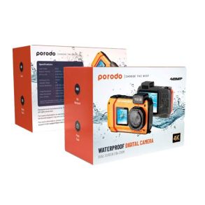 Capture memorable moments in any environment with the Porodo Waterproof Digital Camera. This camera features dual screens and 18x zoom, making it easy to frame and capture the perfect shot. You have a 2.88" 480x640 main screen and a secondary 1.44" 128x128 display to easily capture selfie images. Image resolution of 13MP (interpolated 48MP) and video resolution options of 720p, 1080p, 2.7K, and 4K make it possible to experience the best detailed frames ever. Whether you're shooting stills or recording action packed footage, the Porodo Waterproof Digital Camera delivers eyes catching results. As for battery and working time, it's powered by a 2500mAh, 3.7V battery, offering 2 to 3 hours of photo capture and 3 hours of video recording (depending on resolution). Recharge in just 3 hours, so you're always ready to capture life's adventures. With its waterproof design and advanced features, the Porodo Waterproof Digital Camera is the perfect companion for capturing memories in any setting.