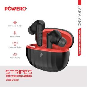 PowerO+ Stripes True Wireless Earbuds - Black & Red