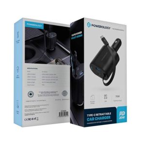 The ultimate product from Powerology comes in the form of its very own “Powerology Type-C Retractable Car Charger”. If you frequently travel around or go someplace in your car, this seems the most powerful and efficient way to keep your mobile devices charged all day. It is specifically optimized to blend with your vehicle perfectly because it is compatible with DC 12/24V. It has a long-lasting battery that never depletes, especially when you need it the most. With several great output options, there is a UAB-A output of 5V/3A, 9V/3A, and 12V/2.5A, even up to 30W. The USB-C1 and the USB-C2 are also included with 5V/3A, 9V/2.22A, and 12V/1.67A for each of them with the upper limit of 20W, thus allowing for a fast charge for the equipment. The charger comes with a 1M PVC retractable element that helps to eliminate some of the difficulties encountered when placing and organizing the charger after it has been used. It is also a creative opportunity because the two are used together to enable power distribution to all connected devices simultaneously without a hassle.