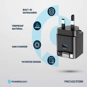 The Powerology Dual Port Retractable GaN Charger offers a dependable and effective charging experience by combining modern technology with functionality. With a maximum output of 35W and a retractable USB-C cable length of 75 cm, this charger ensures quick charging for compatible devices. It is ideal for powering several devices at once. The USB-A port can supply up to 18W. The two ports together support dual-device charging with a combined output of 15W. For safety, the durable matte fireproof PC material supports the latest GaN tech. It ensures an effective power supply while reducing heat. It has a UK 3-pin connector and handles AC 100-240V input. Every charge brings peace of mind. Its design has built-in protections against overheating. The Powerology Dual Port Retractable GaN Charger is compact and easy to use. It charges devices from 0% to 60% in 35 minutes. For modern gadget buyers, it's the best charging option, whether for daily use or travel.