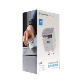 Powerology PWC031 Dual Port Retractable GaN Charger PD65W - White