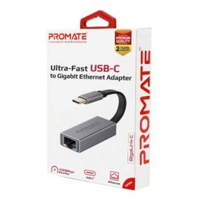 Promate GigaLink-C High Speed USB-C to Gigabit Ethernet Adapter - Grey
