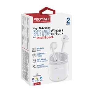 Promate Lima ENC TWS Wireless Earbuds with IntelliTouch - White