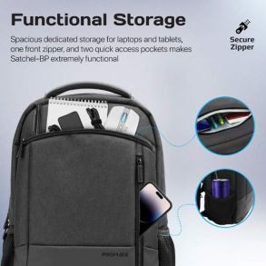 Promate Satchel-BP 15.6" Laptop Backpack With Multiple Pockets - Blak