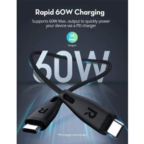 RAVPower RP-CB1037 60W USB-C to USB-C Charging 1.2m Cable - Black
