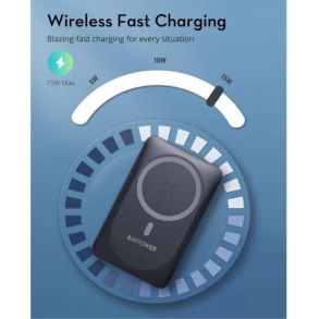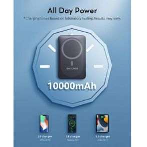 Ravpower Magnetic Wireless Power Bank - the ultimate on-the-go charging companion. With a powerful 10000mAh capacity, say goodbye to tangled cables and enjoy a clutter-free charging experience. Its strong magnetic absorption ensures a secure connection, while compatibility with the official magnetic phone case makes charging effortless. Up to 15W fast wireless charging, stay connected and powered up wherever you go.