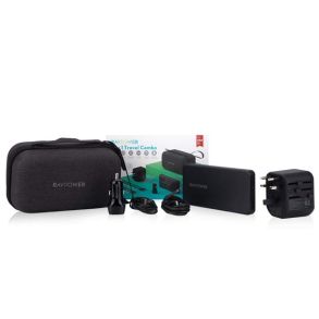The Ravpower 5-in-1 Travel Charging Combo includes a 10000mAh Power Bank, 20W 3 Port Travel Charger, PD20W 1 Port Car Charger, 1m USB-C to Lightning Cable, and 1m USB-C to USB-C Cable.