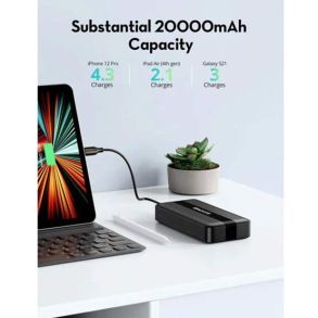 - 20000mAh provides 2.1 charges for iPad Pro Air (4th gen), 4.3 charges for iPhone 12 Pro, and 3 charges for Galaxy S21.
