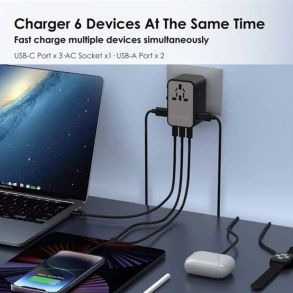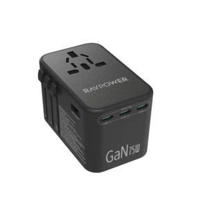 RAVPower RP-PC1043 GaN 75W Travel Universal Power Adapter- Black
