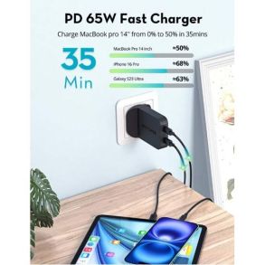 Experience blazing-fast charging with the RAVPower RP-PC1079, a high-performance wall charger equipped with advanced GaN technology. Designed for convenience and efficiency, this compact and foldable charger delivers up to 65W of total power through its dual USB-C ports, making it perfect for charging smartphones, tablets, and even laptops.