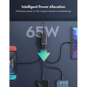 Intelligently distributes 65W of power when charging 4 devices simultaneously, ensuring all your connected devices get high-speed charging.