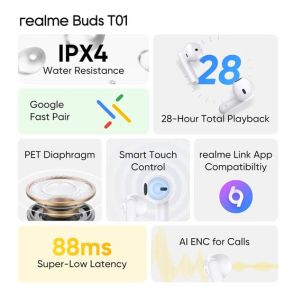 Realme T01 Truly Wireless in-Ear Earbuds - White