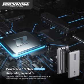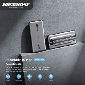 RockRose RRPB36GR 20000 mAh 22.5W Lightning&USB-C Cable Power Bank - Grey