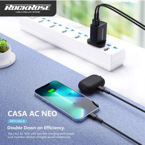 Porodo Dual Port Car Charger 80cm Retractable Type-C Cable PD-FWCH030-BK -Black