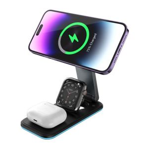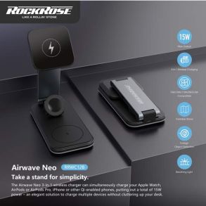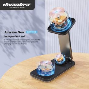 Levelo TERRA Rotating 3 in 1 Wireless Charging Stand with Portable 5000mAh Power Bank - Black