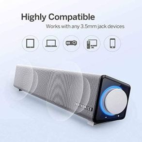 The TaoTronics stereo sound bar connects to all standard devices with a 3.5mm audio jack. These devices include laptops, projectors, smartphones, PCs, tablets, and more. It simplifies the set-up with plug-in installation, letting you switch between different entertainment systems in no time.