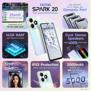 Tecno Spark 20 256GB/8+8GB 6.56 Inches Phone - White