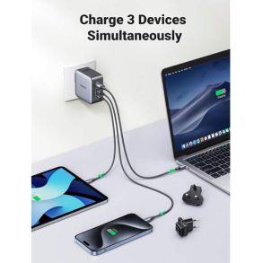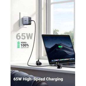 65W USB C Fast Travel Charger: The 65W charger can charge most devices at full speed, and can even charge a MacBook Pro from 0% to 100% in just 1.5 hours. With 2 USB-C ports and 1 USB-A port, you can charge your laptop, tablet, and phone at the same time