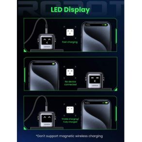 LED Display of Charging Status: The face of the small robot wall charger is an LED display, which shows the charging status in real time when charging is in progress or when it has finished charging, please note that the LED display will only light up when plugged into the power strip.