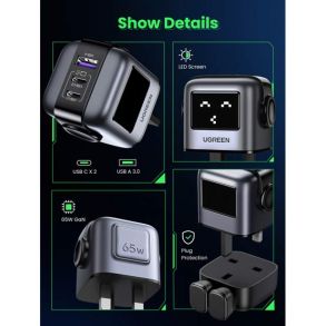 Ugreen CD361 Nexode RG 65W 3-Port GaN Fast Charger UK - Grey