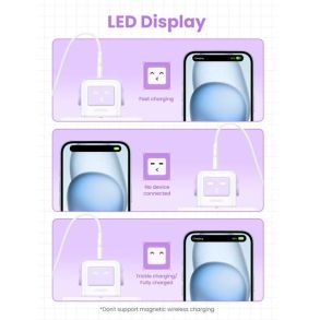 LED Display of Charging Status: The face of the small robot wall charger is an LED display, which shows the charging status in real time when charging is in progress or when it has finished charging, please note that the LED display will only light up when plugged into the power strip.