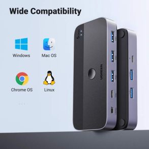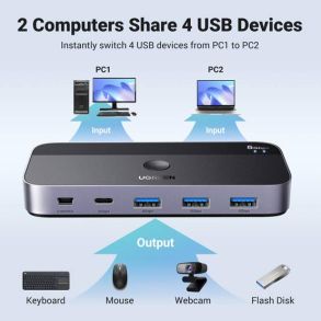 With three USB-A ports and one USB-C port, the Ugreen CM662 switch provides connection versatility. It allows you to quickly and easily share peripherals between two computers. It is an ideal tool for multitasking environments where flexibility in hardware management is required.