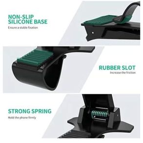 The base of the bracket adopts a vertical and horizontal two way curved design and the upper cover is fastend by a strong clip Suitable for the dashboard edge Suitable for 4-7 12 inch mobile Phone Non Slip silicone High Temperature resistancen