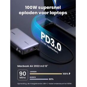 Ugreen PB205 25000mAh Power Bank with Built-in Cable - Black