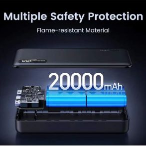 20000mAh High Capacity: 5-7 days of battery life, charging an iPhone 15 Pro 4.5 times or a MacBook Air 15'' 1.1 times. An LED screen shows battery level.