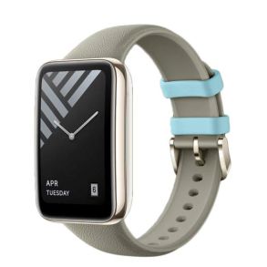 The base colors of the two straps are composed of a calm and versatile green and grey, while the accompanying loops are a brighter yellow and blue for a clean, sleek and refined design.