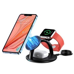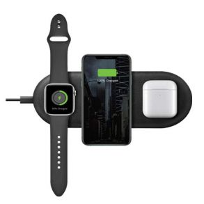 Energea Widisc Trio 3 In 1 Fast Wireless Charging Pad Leatherette, 5W/7.5W/10W - Black