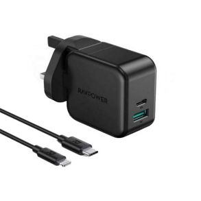 RAVPower 2-Pack PD Pioneer 18W 2-Port Wall Charger with Type-C Lightning Cable Combo UK RP-PC109 – Black